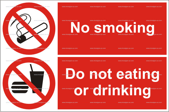 This prohibition sign indicates that both smoking and eating are strictly forbidden in the designated area to minimize fire risks, contamination, or hygiene violations.