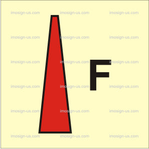 Complies with IMO Resolution A.952(23) — Graphical Symbols for Fire Control Plans, as required by SOLAS Chapter II-2.This IMO sign indicates the location of a foam nozzle used for directing foam discharge during firefighting.