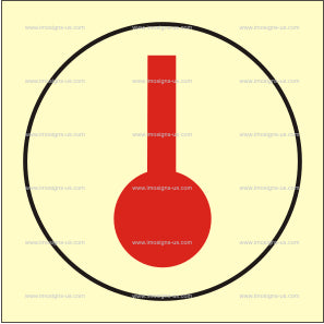 This IMO sign indicates the location of a heat detector, which activates the fire alarm system when a rapid rise in temperature or a set temperature threshold is reached.