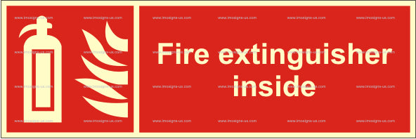 This IMO sign indicates that a fire extinguisher is stored inside a cabinet, locker, or enclosed space, ensuring quick access during an emergency.