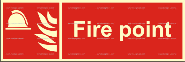 This IMO sign indicates a designated fire point — a location where fire fighting equipment such as extinguishers, hoses, or fire blankets is readily accessible in case of emergency.