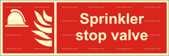 This IMO sign indicates the location of a sprinkler stop valve, which is used to control the water supply to the sprinkler system onboard.