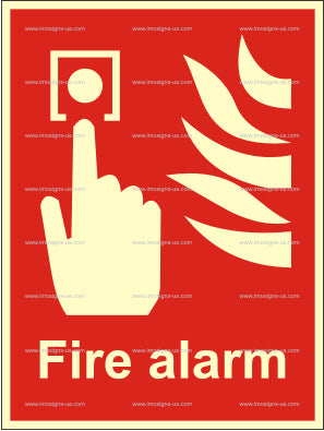 This IMO sign indicates the location of a fire alarm and includes clear text for rapid identification. It helps crew and passengers quickly locate and activate the fire alarm system in case of emergency.