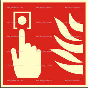 This IMO sign indicates the location of a fire alarm call point, allowing crew or passengers to manually activate the fire alarm system in the event of a fire.