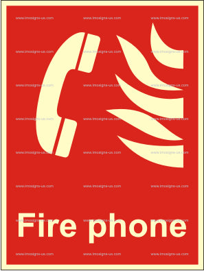 This IMO sign indicates the location of a fire telephone and includes text for clarity. Fire telephones provide direct communication between emergency response personnel and the bridge or fire control center during a fire event.
