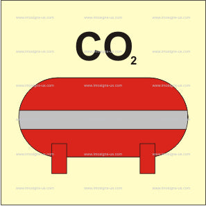 Complies with IMO Resolution A.952(23) — Graphical Symbols for Fire Control Plans, as required by SOLAS Chapter II-2.This IMO sign indicates the location of a fixed carbon dioxide (CO₂) fire extinguishing installation onboard, used as part of the vessel’s fire suppression system.