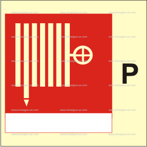Complies with IMO Resolution A.952(23) — Graphical Symbols for Fire Control Plans, as required by SOLAS Chapter II-2.This IMO sign indicates the location of a powder (dry chemical) fire hose and nozzle, used to suppress fires involving flammable liquids, gases, and electrical equipment onboard.