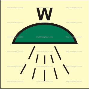 This IMO sign indicates spaces protected by a fixed water-based fire-extinguishing system onboard the vessel.