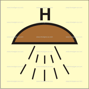 Complies with IMO Resolution A.952(23) — Graphical Symbols for Fire Control Plans, as required by SOLAS Chapter II-2. This IMO sign indicates areas protected by a fixed gas fire-extinguishing system that uses gases other than CO₂ or nitrogen, such as FM-200, Novec 1230, or other clean agents.
