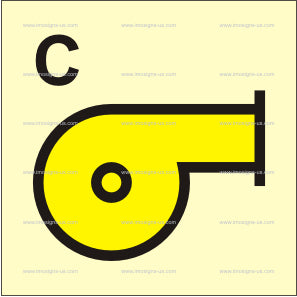 Application: Installed at ventilation control panels, fan rooms, or marked on fire control plans to indicate the presence of mechanical fans for cargo ventilation