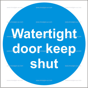This mandatory sign indicates that the watertight door must remain shut to ensure the vessel’s watertight integrity and maintain onboard safety.