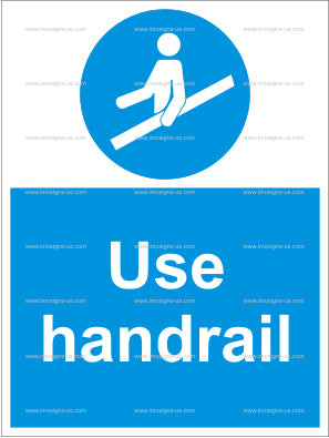 This mandatory sign indicates that handrails must be used to prevent slips and falls on stairs or ramps onboard vessels and in industrial environments.