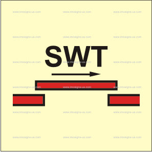 Complies with IMO Resolution A.952(23) — Graphical Symbols for Fire Control Plans, as required by SOLAS Chapter II-2. This IMO sign indicates the location of an “A” class sliding fire door with a self-closing mechanism and semi-watertight (SWT) properties. It is designed to provide 60-minute fire resistance and limited water ingress protection in marine environments.