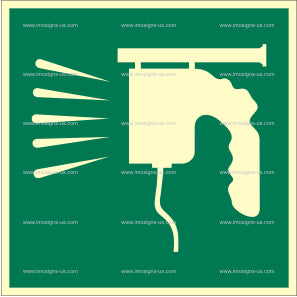 This IMO sign indicates the location of the Aldis signal lamp, used for visual signaling during emergencies.