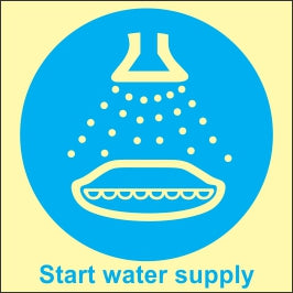 This IMO sign indicates the activation point for the water spray system, used for fire suppression.